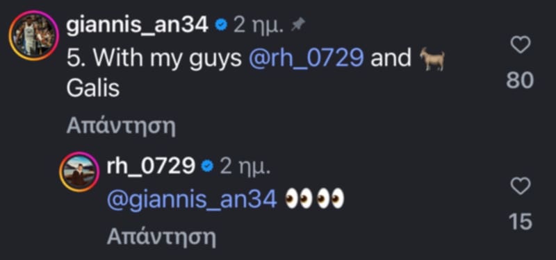Ο ηγέτης των Μιλγούοκι Μπακς έγραψε: “Νούμερο 5, με τους δικούς μου Σιάο και Γκάλη”, συνοδεύοντάς το με το emoji του GOAT, δηλαδή του κορυφαίου όλων των εποχών.