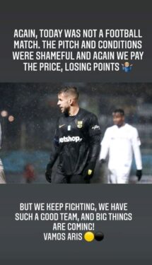 ” Ξανά, σήμερα δεν ήταν ένας αγώνας ποδοσφαίρου. Tο γήπεδο και οι συνθήκες ήταν ντροπιαστικές και πάλι πληρώνουμε το τίμημα, χάνοντας πόντους. Αλλά συνεχίζουμε να παλεύουμε, έχουμε μια τόσο καλή ομάδα, και έρχονται μεγάλα πράγματα”