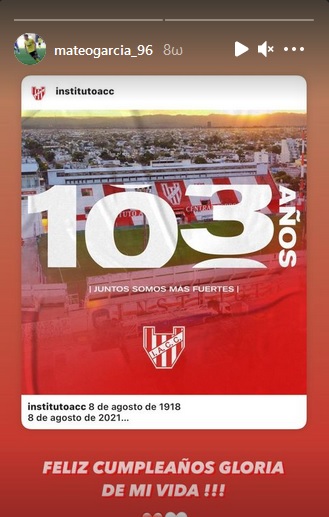 Σήμερα το Ινστιτούτο Ατλέτικο της Αργεντινής συμπληρώνει 103 χρόνια ζωής, από όπου ξεκίνησε τα ποδοσφαιρικά του βήματα ο Ματέο Γκαρσία.