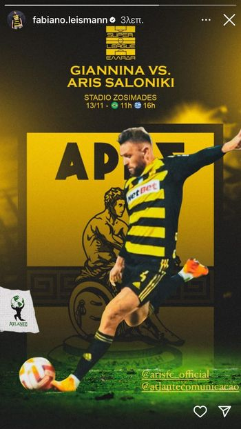 Την δική του προαναγγελία για την αναμέτρηση κόντρα στον ΠΑΣ Γιάννινα δημοσίευσε στον προσωπικό του λογαριασμό στο Instagram ο κεντρικός αμυντικός των κιτρινόμαυρων Φαμπιάνο Λέισμαν.