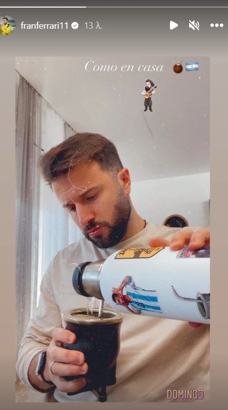 «Κυριακή στο σπίτι…», αναφέρει ο Φράνκο Φεράρι σε ανάρτησή του στα social media, λίγο πριν απολαύσει το… πατροπαράδοτο αργεντίνικο μάτε.