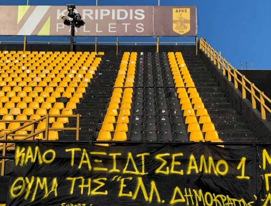 Mε τον δικό τους τρόπο, παρά την απουσία τους από τις εξέδρες, είπαν το «αντίο» στον Βασίλη Μάγγο οι φίλοι του Άρη.