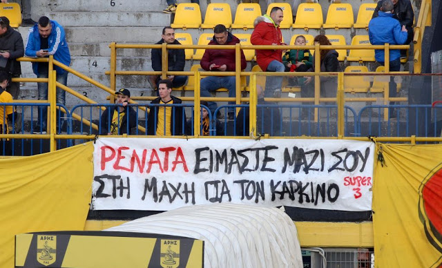 Οι φίλοι του Άρη στάθηκαν δίπλα στο πλευρό της Ρενάτας, οπαδού του Πανιωνίου που δίνει μάχη με τον καρκίνο κάτι που δεν άφησε ασυγκίνητους του παίκτες των κυανέρυθρων
