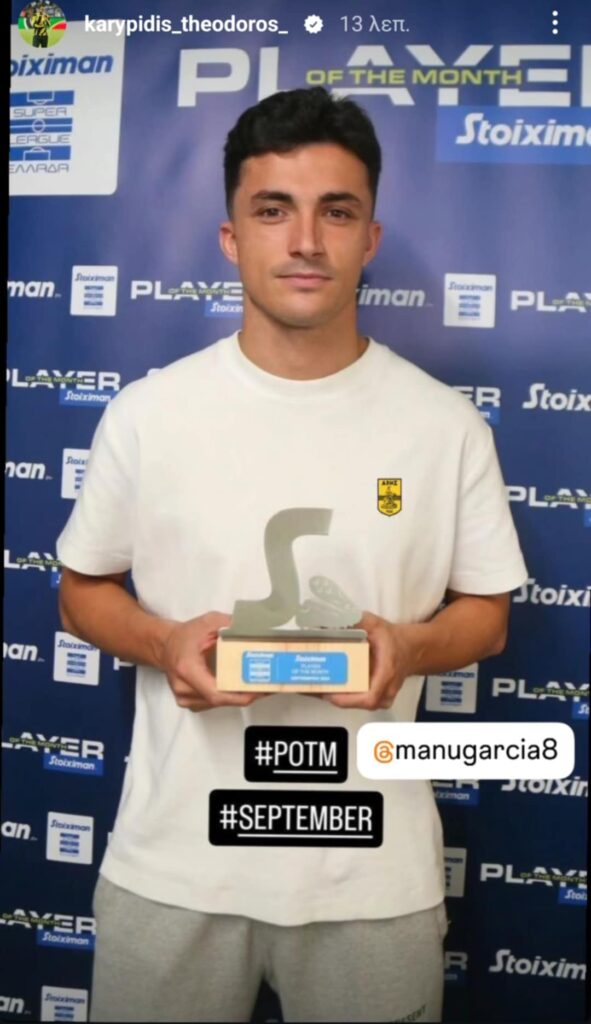 Ο Μάνου Γκαρθία παρέλαβε το βραβείο του “Player of the Month” για τον μήνα Σεπτέμβριο, περιμένοντας… κι άλλα τα οποία έρχονται.
