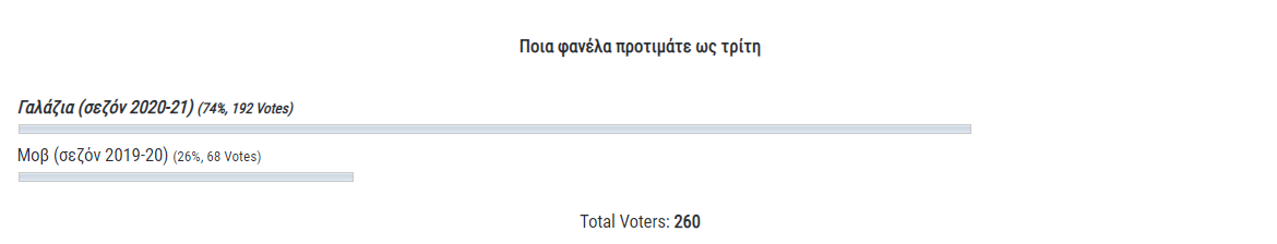 Η απόφαση ήταν ξεκάθαρη, με το 74% να επιλέγει την γαλάζια φανέλα της σεζόν 2020-21 σε σχέση με μόλις το 26% που δήλωση προτίμηση στην περσινή μοβ!