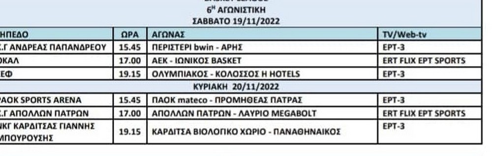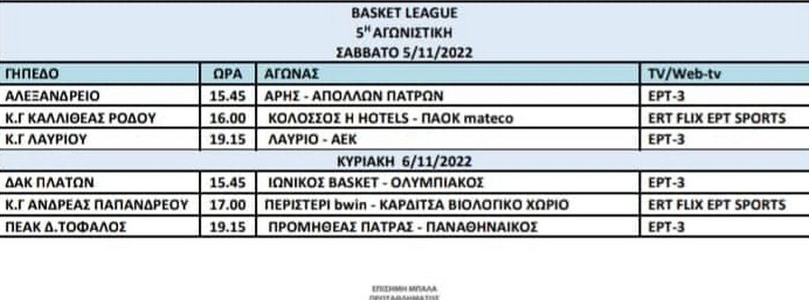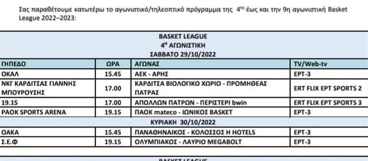 Έγιναν γνωστές οι λεπτομέρειες για το πρόγραμμα της Βasket League μέχρι και την 9η αγωνιστική. Παρακάτω, μπορείτε να δείτε τις μέρες και τις ώρες των αγώνων που ακολουθούν, τόσο για τον Άρη όσο και για τις υπόλοιπες ομάδες. Να σημειωθεί ότι το ματς (29/10) με την ΑΕΚ θα γίνει το Σάββατο στις 15.45