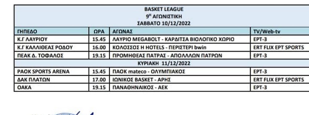 Όλες οι λεπτομέρειες για το πρόγραμμα έως την 9η αγωνιστική – Στις 15.45 το ΑΕΚ-Άρης (pics)