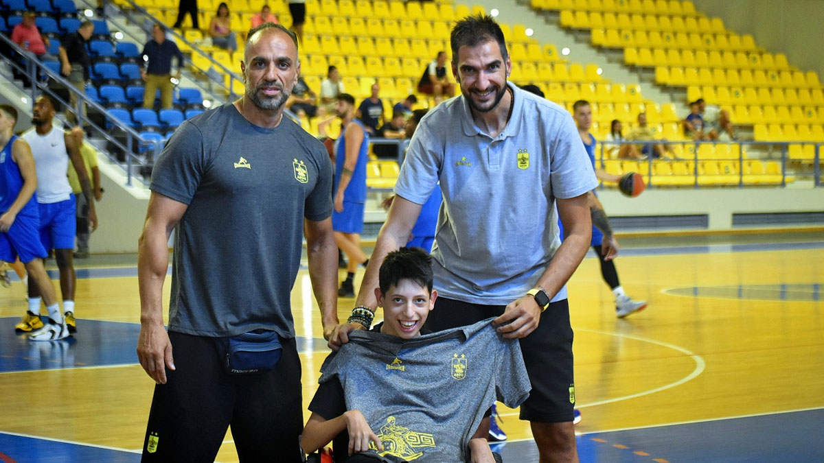 Ο Χρήστος Ταπούτος και ο Γιάννης Νικητάκης έδωσαν μία φανέλα του Άρη στον μικρό φίλο της Καρδίτσας, Βασίλη και η χαρά του ήταν, με μία λέξη, συγκινητική
