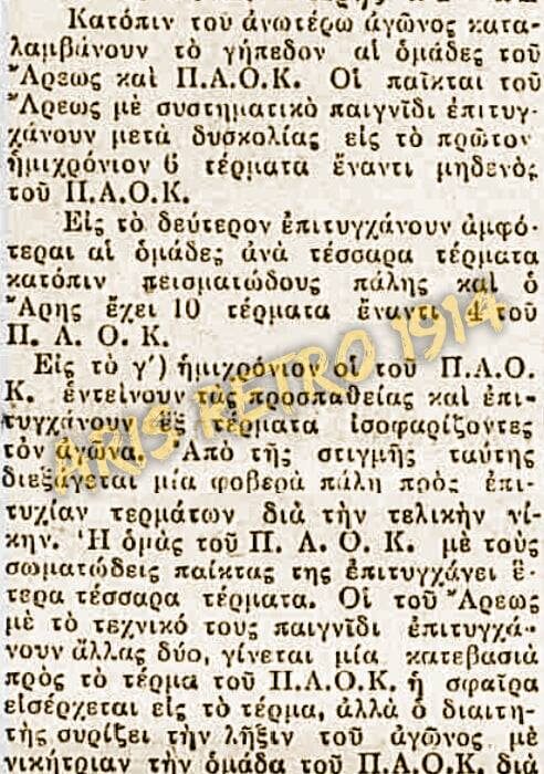 Η ομάδα μας θα ηττηθεί και αυτό συνέβη γιατί στη τελευταία φάση ο διαιτητής δεν μέτρησε καλάθι του Άρη, που σύμφωνα με όλα τα ρεπορτάζ της εποχής θα έπρεπε να μετρήσει.