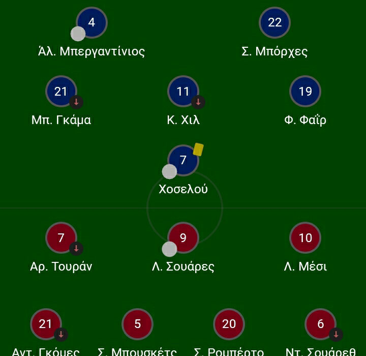 Ο Μπρούνο Γκάμα αντικαταστάθηκε στο 71ο λεπτό για να περάσει στη θέση του ο Γκαέλ Κακουτά ενώ ο Αρίμπας συμμετείχε σε όλη τη διάρκεια του παιχνιδιού!