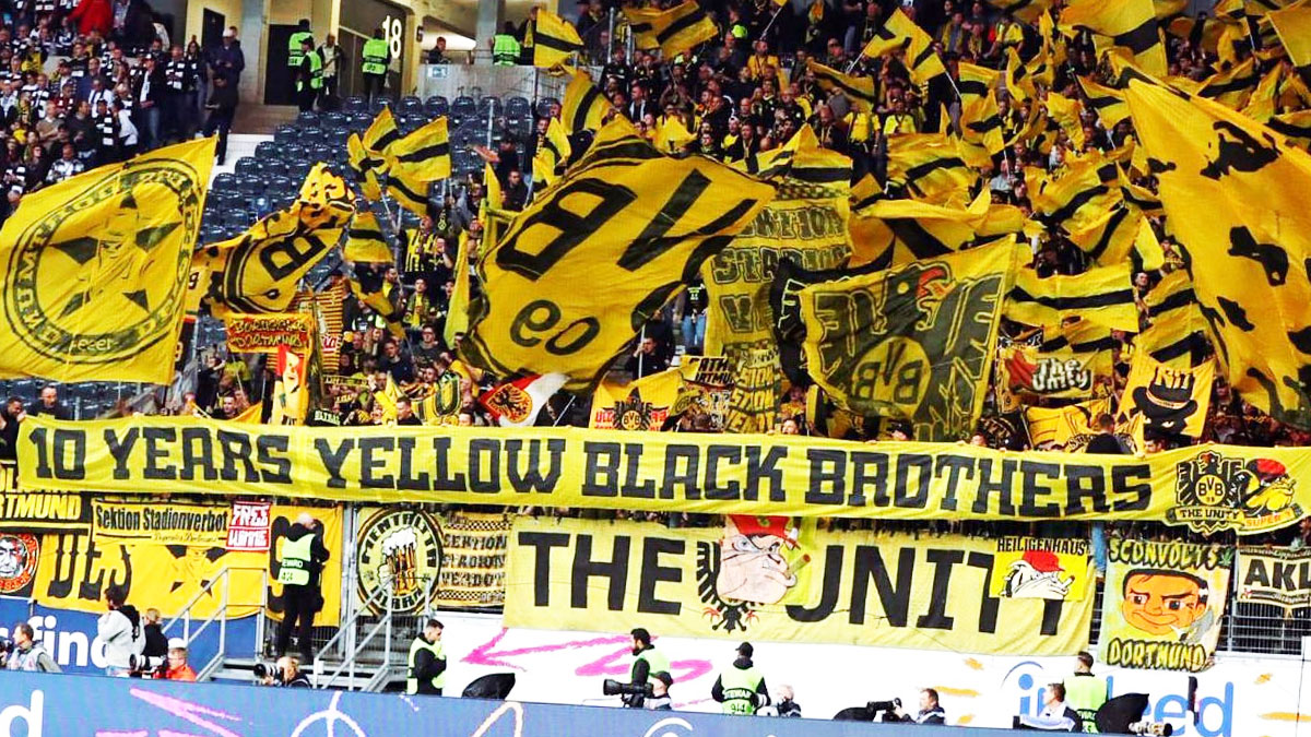 «Δέκα χρόνια κιτρινόμαυρα αδέλφια» έγραφε ένα από τα μεγάλα πανό που ανέβηκαν στο πέταλο της γερμανικής ομάδας, ενώ υπήρχαν και κάποια μικρότερα με το «Unity» και το σήμα του SUPER 3. Όλοι μαζί πανηγύρισαν το μεγάλο διπλό (1-2) μέσα στην έδρα της Άιντραχτ.