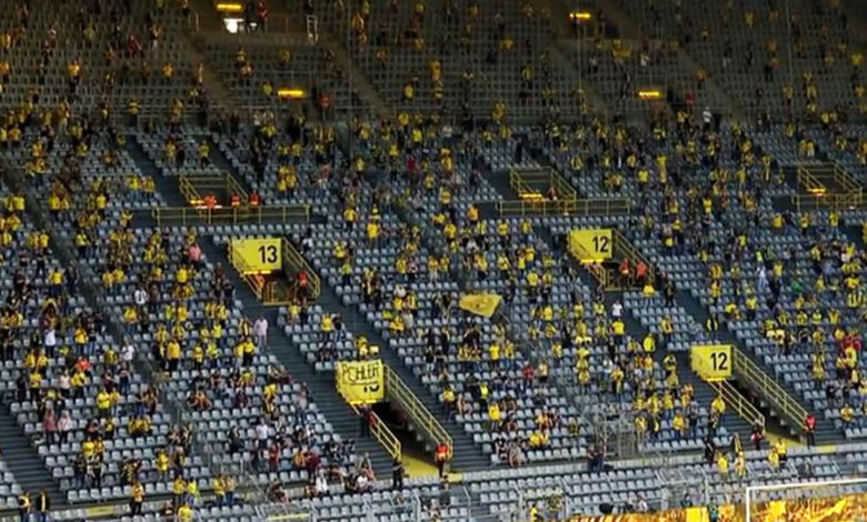 Ξεχωριστή εικόνα στο «Κίτρινο Τείχος» με τους οπαδούς της Ντόρτμουντ να κάθονται με κενά, τηρώντας το πρωτόκολλο της UEFA. Περίπου…