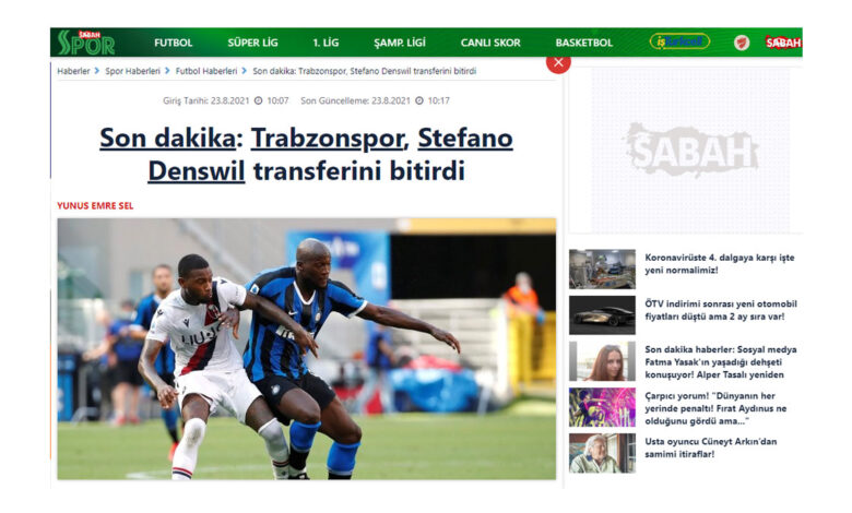 Sabah: «Η Τράμπζονσπορ συμφώνησε και παίρνει τον Ντένσβιλ»! (photo)