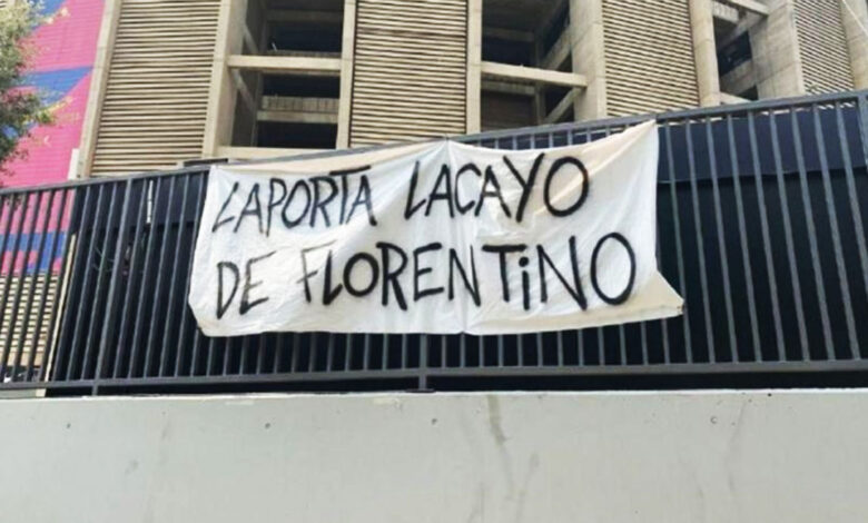 Πανό κατά Λαπόρτα έξω από το «Καμπ Νόου»: «Φερέφωνο του Πέρεθ – Εσύ διακοπές και ο Μέσι στο Παρίσι»