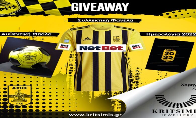 Συλλεκτικά δώρα από την ΠΑΕ Άρης, με τη χορηγία του Kritsimis Jewelllery. Αναλυτικά η σχετική ενημέρωση: “GIVEAWAY Μπαίνουμε σε γιορτινό…