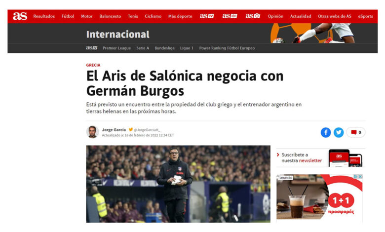 AS: «Ο Άρης παρουσίασε πρότζεκτ, στο τελικό στάδιο οι συζητήσεις με Μπούργος»
