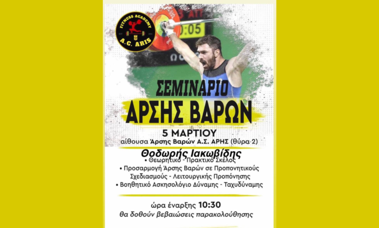 Ο Α.Σ. Άρης με ενημέρωσή του, έκανε γνωστό πως θα πραγματοποιηθεί σεμινάριο από τον πρωταθλητή άρσης βαρών, Θοδωρής Ιακωβίδη. Η…