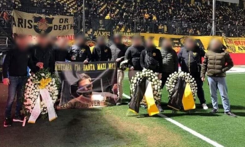 Λίγο πριν την έναρξη του αγώνα του Άρη με τον Ατρόμητο, στο μνημείο που βρίσκεται μπροστά από τη θύρα 3…