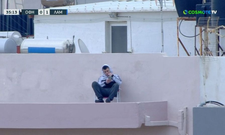 ΟΦΗ – Λαμία: Φίλαθλος είδε το ματς αραχτός από την… ταράτσα (VID)