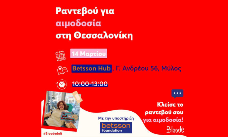 Σε εκδήλωση αιμοδοσίας, που θα πραγματοποιηθεί αύριο (14/03, 10:00) στο Betsson Hub στη Θεσσαλονίκη (Γεωργίου Ανδρέου 56, Τ.Κ. 546 27),…