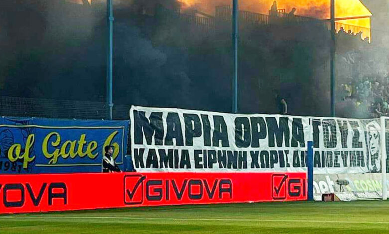 «Μαρία όρμα τους…»: Πανό στήριξης προς την Μαρία Καρυστιανού από τους φίλους του Παναιτωλικού