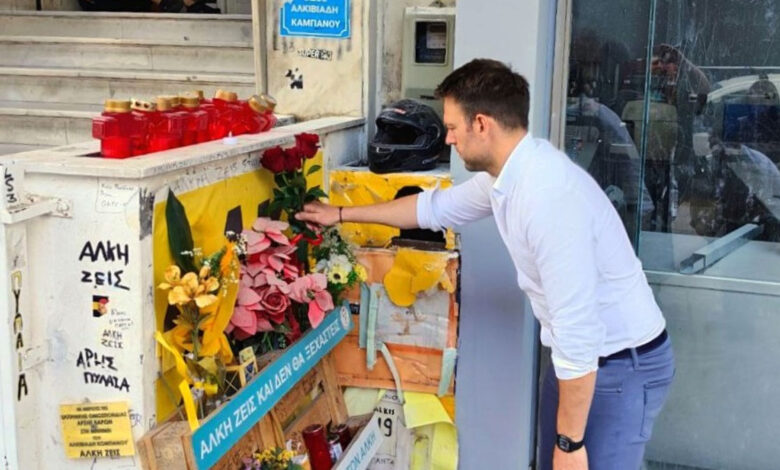 Ο Κασσελάκης άφησε λουλούδια στο σημείο που δολοφονήθηκε ο Άλκης