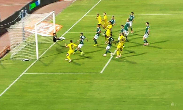Μια ανάσα από το 1-0 ο Άρης. Ύστερα από κόρνερ του Άρη και μετά από την αρχική απομάκρυνση της άμυνας…