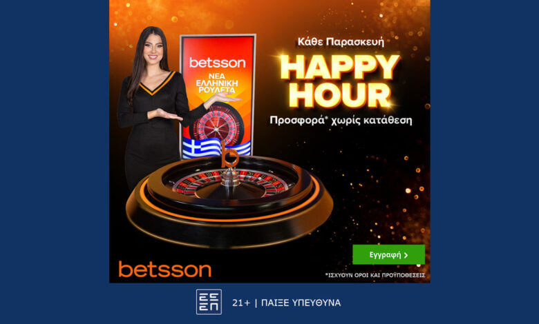 Η νέα 24ωρη ελληνική ρουλέτα της Betsson σε γεμίζει δώρα* κάθε Παρασκευή! Το Happy Hour της Betsson Greek Roulette ξεκινάει…