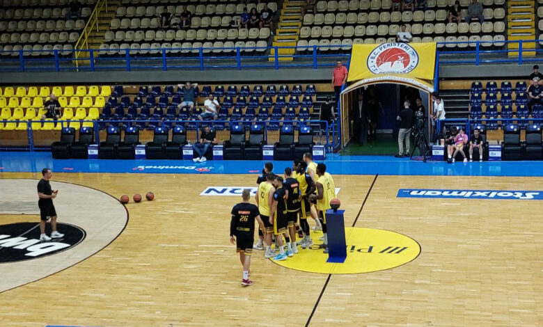 Στο γήπεδο οι καλαθοσφαιριστές της ομάδας. Ο Άρης προετοιμάζεται για τον μικρό τελικό, με τους αθλητές της ομάδας να βγαίνουν…