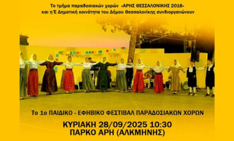 Το τμήμα Παραδοσιακών χορών «ΑΡΗΣ ΘΕΣΣΑΛΟΝΙΚΗΣ 2016» και η Ε’ Δημοτική κοινότητα του Δήμου Θεσσαλονίκης συνδιοργανώνουν: Το 1ο Παιδικό-Εφηβικό Φεστιβάλ…