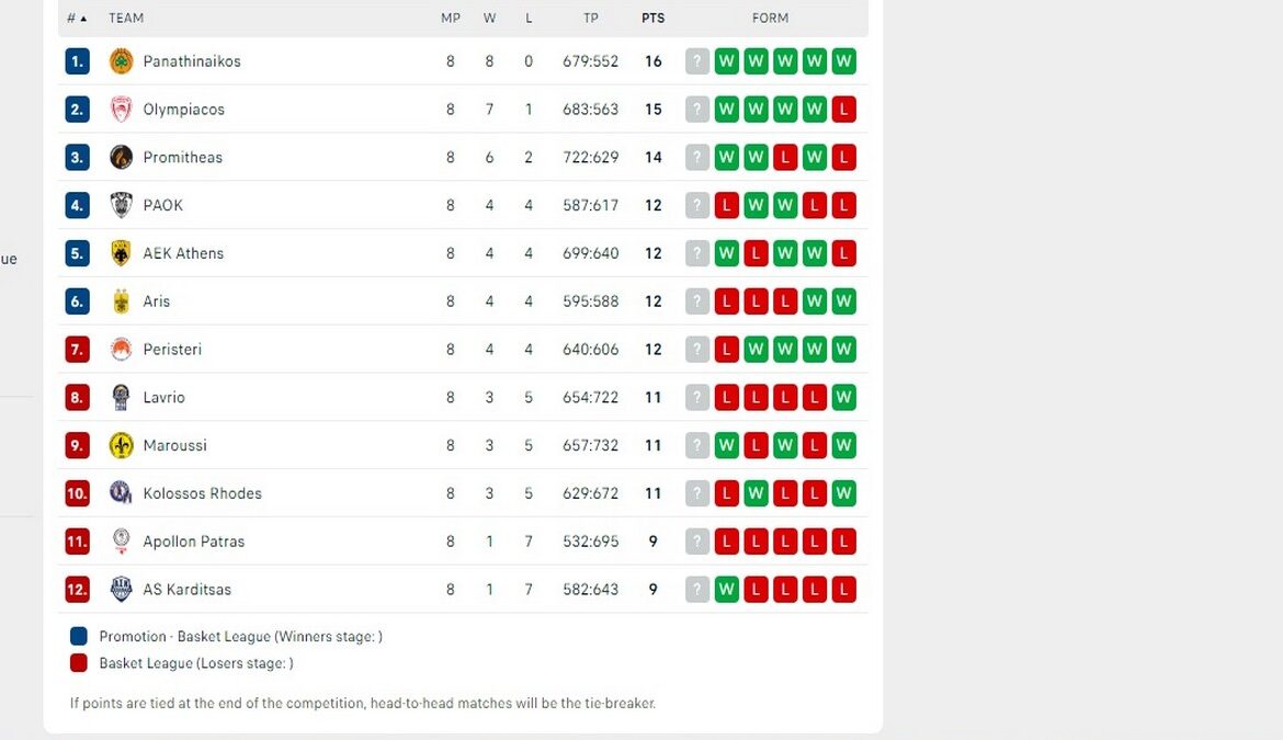 Σε ματς που έγινε την Δευτέρα, ο Ολυμπιακός κέρδισε εντός έδρας το Περιστέρι με 87-74. Δείτε πώς έχει διαμορφωθεί η βαθμολογία του πρωταθλήματος μετά την ολοκλήρωση της 8ης αγωνιστικής.
