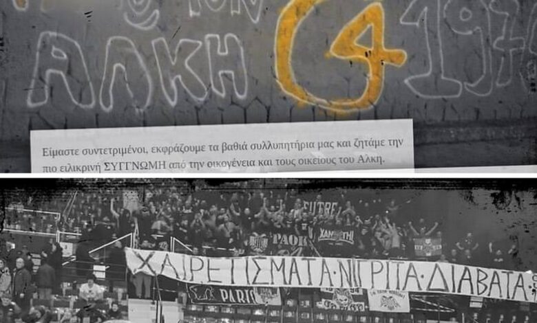 Kάθε φορά φροντίζουν να σου υπενθυμίζουν πως η υποκρισία είναι χαρακτηριστικό τους. Αυτή φαίνεται ξανά, σε ανάρτηση του “Aris Media Factory”. Στη πρώτη φωτογραφία, υπάρχει η φράση στην ανακοίνωση των Σ.Φ. ΠΑΟΚ με την “συγγνώμη” για τον Άλκη, αλλά και μια εμετική αναφορά στον αδικοχαμένο φίλο του Άρη όπου γράφεται το “G4” (Gate 4, δηλαδή).