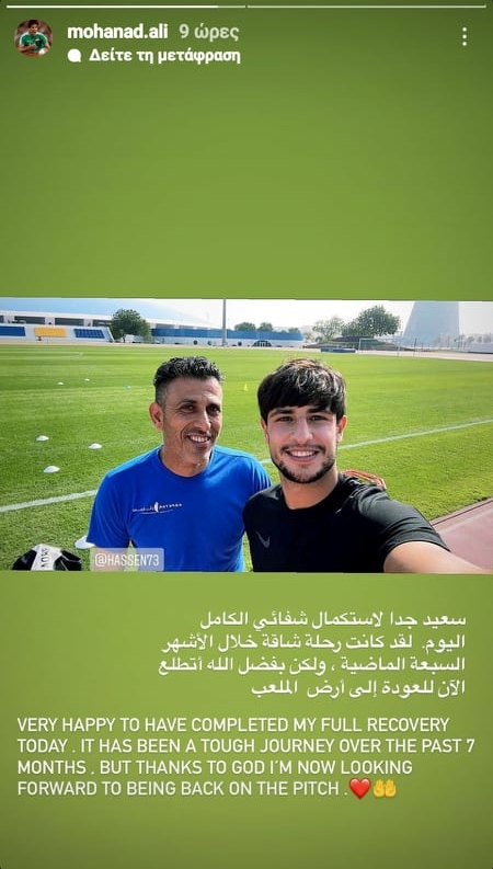 “Είμαι πολύ χαρούμενος που ολοκλήρωσα την πλήρη ανάρρωσή μου σήμερα. Ήταν δύσκολο ταξίδι τους τελευταίους 7 μήνες. Όμως, χάρη στον Θεό, ανυπομονώ τώρα να επιστρέψω στο γήπεδο”, ήταν το μήνυμα που έστειλε στους φίλους του στο Instagram.