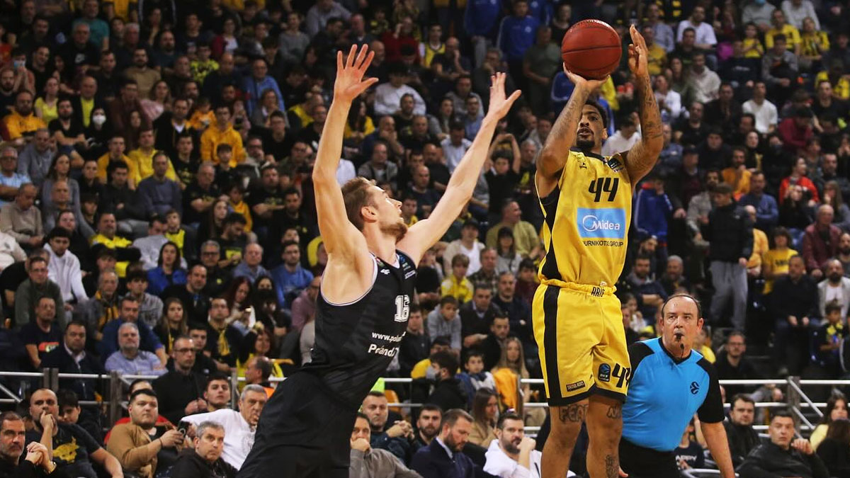 Τέλος έχει ενδιαφέρον να συγκρίνουμε την επίθεση του Προμηθέα με την άμυνα του Άρη. Οι κιτρινόμαυροι ναι μεν δυσκολεύονται να αμυνθούν στην ρακέτα, αλλά από την άλλη πλευρά είναι εξαιρετικοί στο να στερούν το τρίποντο από τις ομάδες, όπως μπορείτε να δείτε παρακάτω.