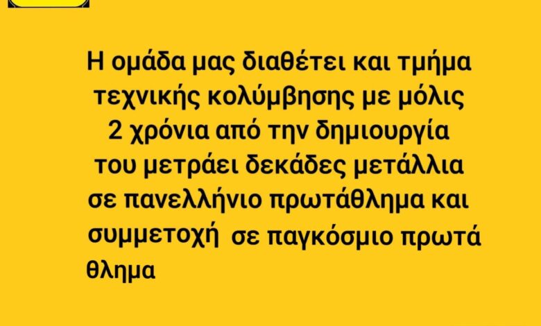 “Οι εγγραφές έχουν ξεκινήσει και για το τμήμα της τεχνικής κολύμβησης. Ελάτε να μάθετε την διαφορετικότητα του αθλήματος” αναφέρει η σχετική ενημέρωση.