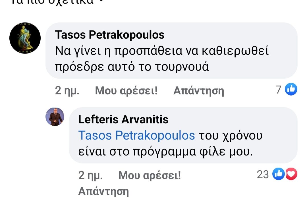 Ο πρόεδρος του Α.Σ. Άρης και αντιπρόεδρος της ΚΑΕ, Λευτέρης Αρβανίτης, απάντησε σε φίλο της ομάδας σχετικά με το τουρνουά Nick Galis Cup.