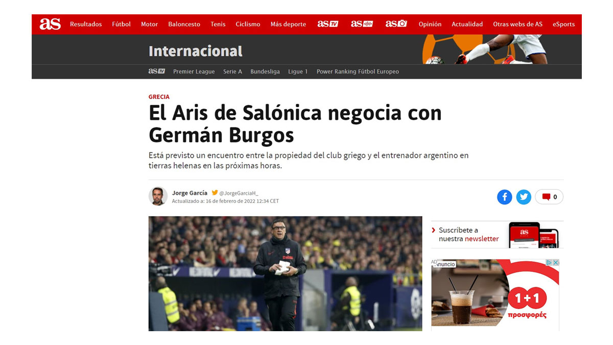 Η γνωστή εφημερίδα της Μαδρίτης AS έδωσε στην ηλεκτρονική έκδοσή της ένα επιπλέον στοιχείο στο ρεπορτάζ για τις συνομιλίες του Άρη με τον Χερμάν Μπούργος.