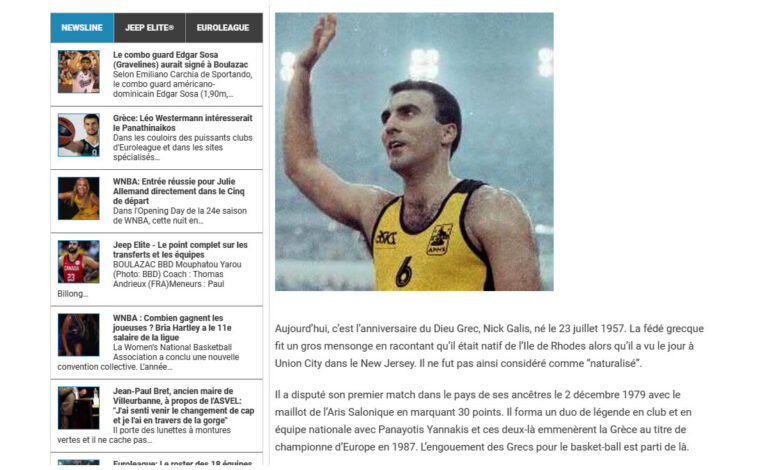 Αφιέρωμα στον Νίκο Γκάλη έκανε η Γαλλική ιστοσελίδα “BasketEurope” με αφορμή το 63α γενέθλια του. Οι Γάλλοι αναφέρονται στον Νικ…