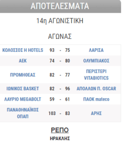 Basket League: Η βαθμολογία στην αρχή του δεύτερου γύρου (photo)