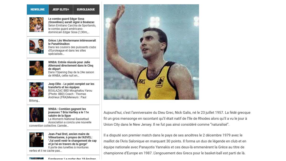 Αφιέρωμα στον Νίκο Γκάλη έκανε η Γαλλική ιστοσελίδα “BasketEurope” με αφορμή το 63α γενέθλια του.