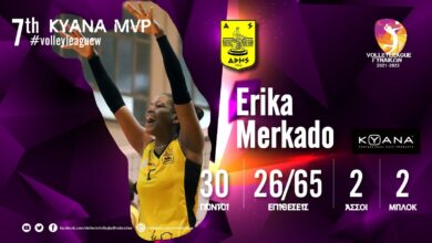 Βόλεϊ Γυναικών: Η Έρικα Μερκάδο KYANA MVP της 7ης αγωνιστικής της Volley League