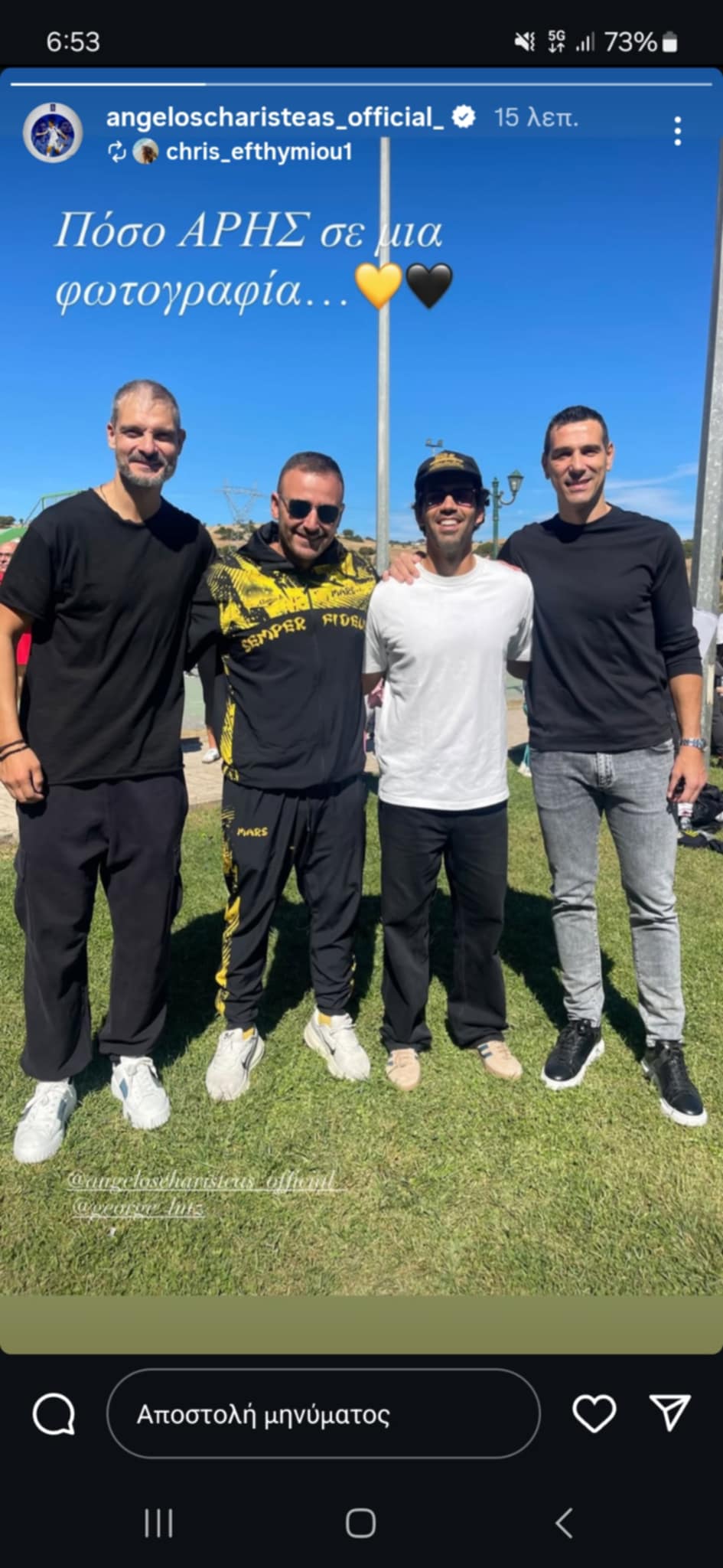 Ο Άγγελος Χαριστέας δημοσίευσε στα social media φωτογραφία στην οποία απεικονίζεται ο ίδιος σε έναν ιδιαίτερα… κιτρινόμαυρο κύκλο.