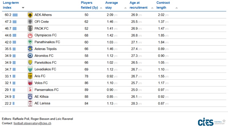 Η ΑΕΚ-με διαφορά και δείκτη 60,2- είναι η ομάδα της ελληνικής Super League που επικεντρώνεται περισσότερο από κάθε άλλη στο μακροπρόθεσμο μέλλον.