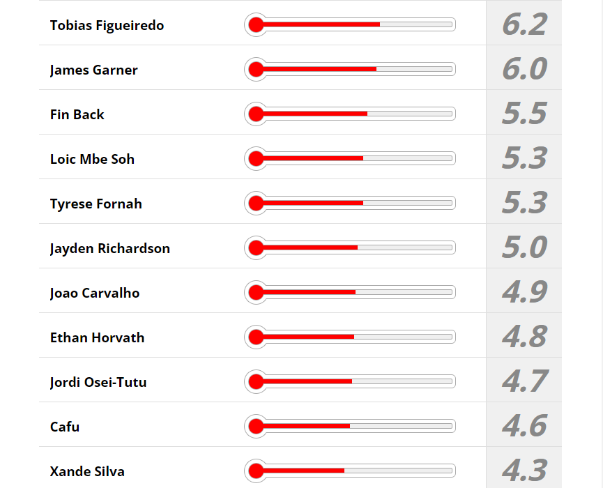 Συγκεκριμένα ο πρώην ποδοσφαιριστής του Άρη πήρε βαθμολογία 4,3 κατά μέσο όρο από τους φίλους της Φόρεστ, νούμερο το οποίο είναι το δεύτερο χειρότερο σε ολόκληρη την ομάδα! Μέσα στους χειρότερους της Νότιγχαμ είναι και ένας ακόμη παίκτης που πέρασε στην Ελλάδα, ο Καφού.