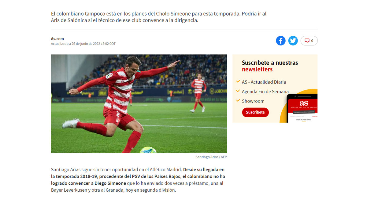Τα δεδομένα για την περίπτωση του Σαντιάγκο Αρίας εξήγησε η εφημερίδα «AS» μέσα από την έκδοση της στην Κολομβία.