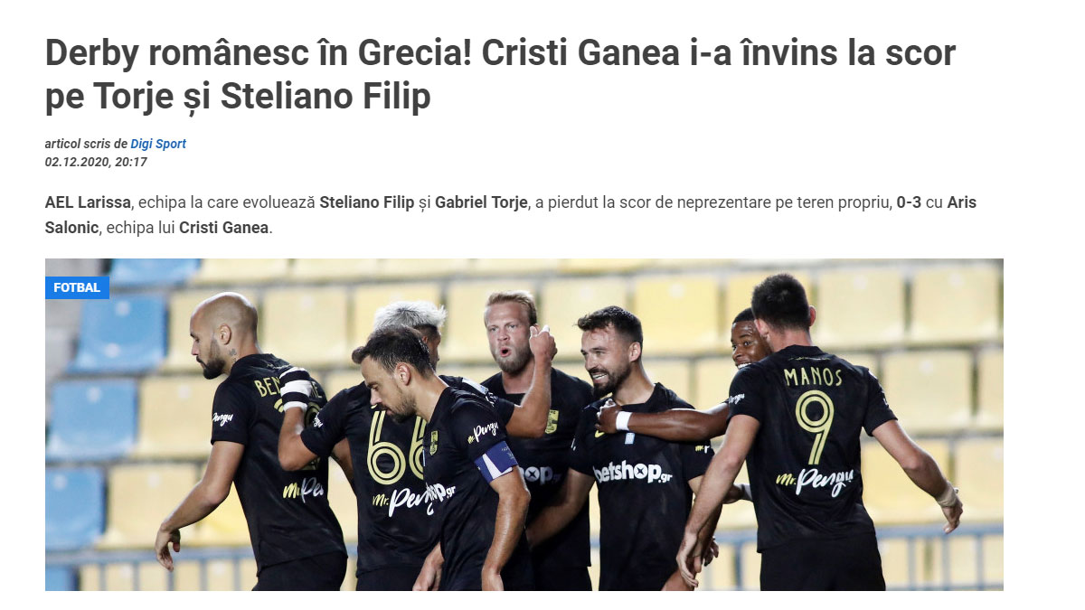 Αναφορά στο ΑΕΛ-Άρης έγινε από την Ρουμάνικη ιστοσελίδα digisport.ro.