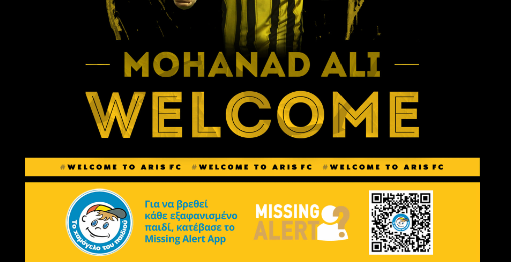 Μέσω της τελευταίας ανακοίνωσης μεταγραφής του Μοχάναντ Αλί τις βραδινές ώρες της Δευτέρας, η ΠΑΕ Άρης δημοσίευσε στην αναγγελία της μεταγραφής και το missing alert του Χαμόγελου του Παιδιού, ώστε να συμβάλει από την πλευρά της στον εντοπισμό των παιδιών που έχουν εξαφανιστεί.