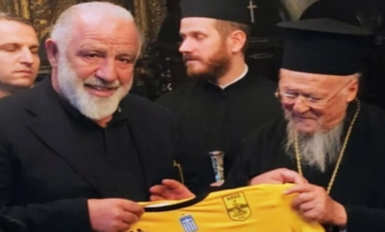 Δόθηκε φανέλα του Άρη στον Οικουμενικό Πατριάρχη Βαρθολομαίο (pic)