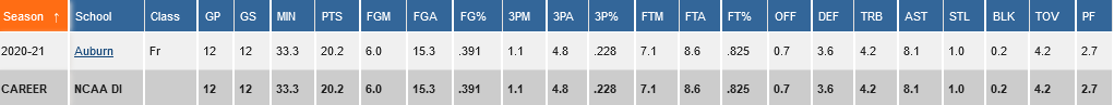 ΤΑ ΣΤΑΤΙΣΤΙΚΑ ΤΟΥ ΣΤΟ NCAA