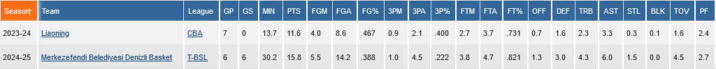 Τη σεζόν 2023-24 αγωνίστηκε στο πρωτάθλημα της Κίνας για λογαριασμό των Liaoning Dinosaurs με 11.6 πόντους, 2.3 ριμπάουντ και 3.3 ασίστ και φέτος έπαιζε μέχρι πρότινος στην τουρκική Merkezefendi Belediyesi, με 15.8 πόντους, 4.3 ριμπάουντ, 6.0 ασίστ και 1.5 κλεψίματα ανά αγώνα.